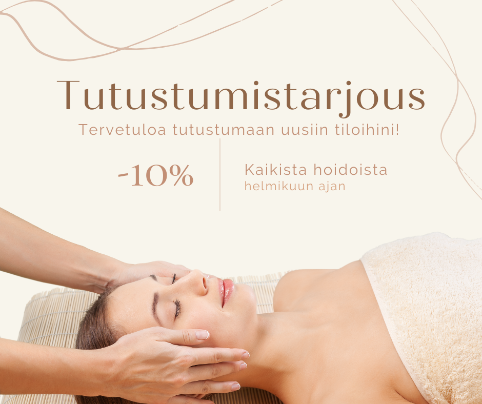 Niin se vaan on muutto takana ja uusiin tiloihin tutustuminen menossa itse kullakin! Halusin piristää helmikuutasi pienellä tarjouksella, joka on voimassa kaikkiin hoitoihin. Tarjous lasketaan kassalla ja aikoja pääset varailemaan alta. Ilta-ajat taas ovat vähän tukossa, joten kannattaa olla ajoissa liikkeellä. Avasin myös muutaman sunnuntain...